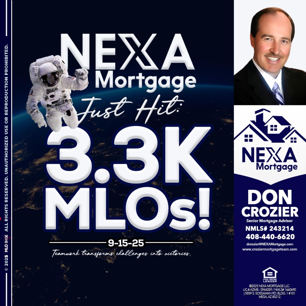 Hi, my name is Don Crozier. I’m a Loan Officer with NEXA Mortgage LLC., offering personalized mortgage solutions, fast customized quotes, great rates and service with integrity.