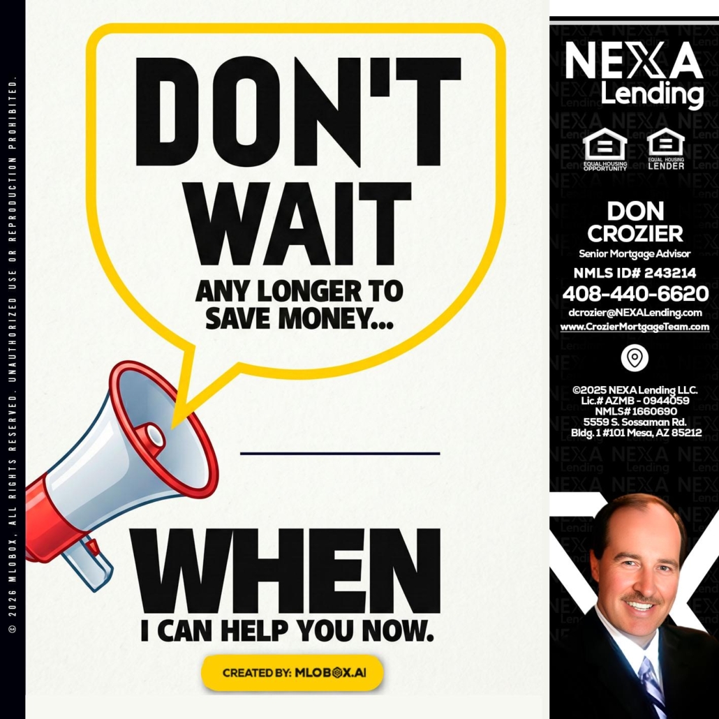 Hi, my name is Don Crozier. I’m a Loan Officer with NEXA Lending LLC., offering personalized mortgage solutions, fast customized quotes, great rates and service with integrity.