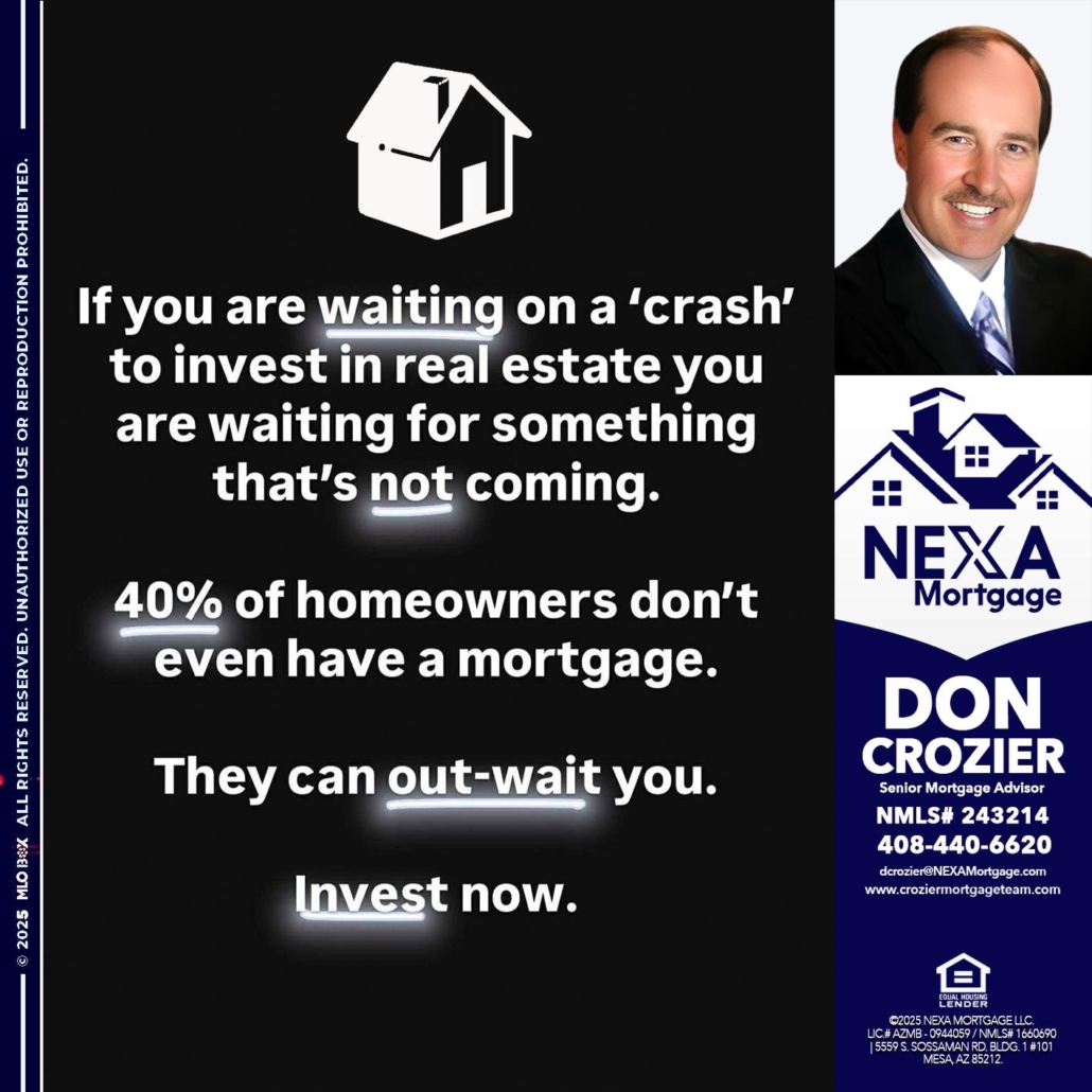 Hi, my name is Don Crozier. I’m a Loan Officer with NEXA Mortgage LLC., offering personalized mortgage solutions, fast customized quotes, great rates and service with integrity.