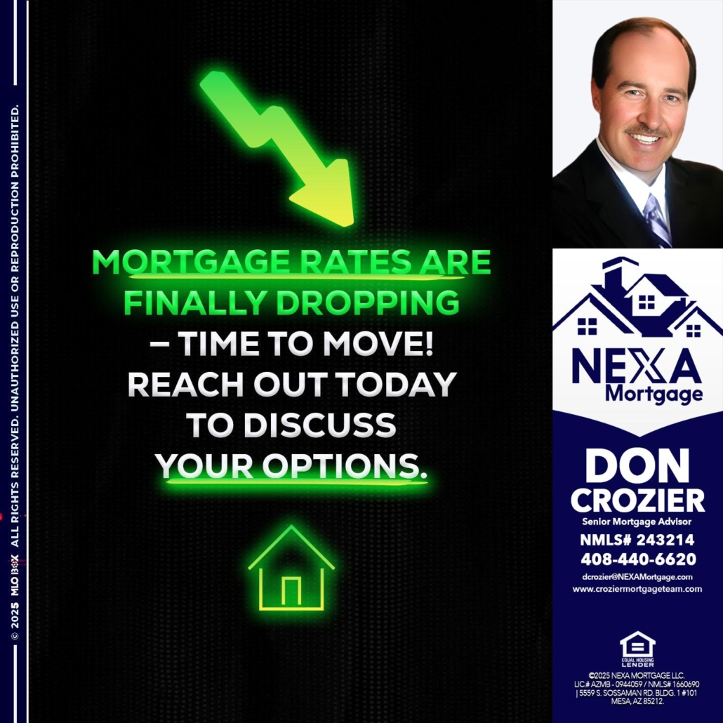 Hi, my name is Don Crozier. I’m a Loan Officer with NEXA Mortgage LLC., offering personalized mortgage solutions, fast customized quotes, great rates and service with integrity.