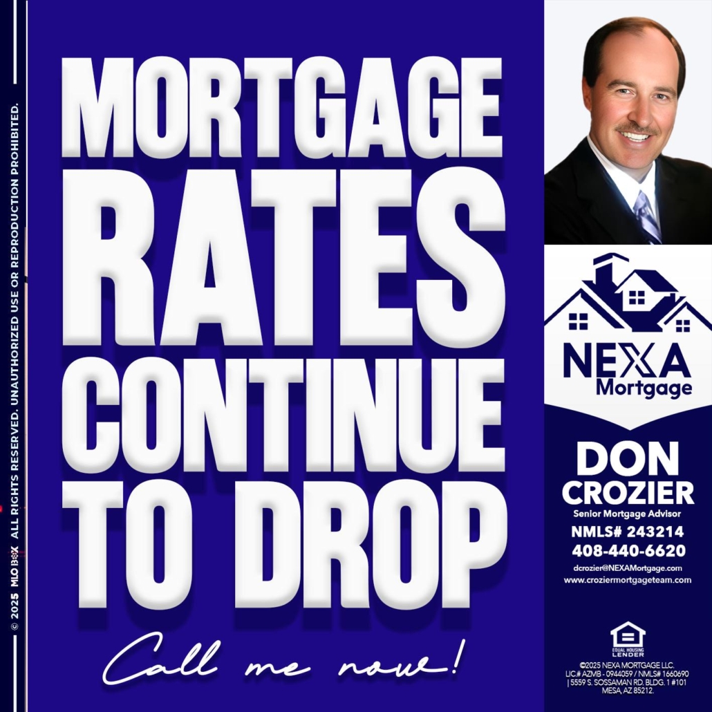 Hi, my name is Don Crozier. I’m a Loan Officer with NEXA Mortgage LLC., offering personalized mortgage solutions, fast customized quotes, great rates and service with integrity.