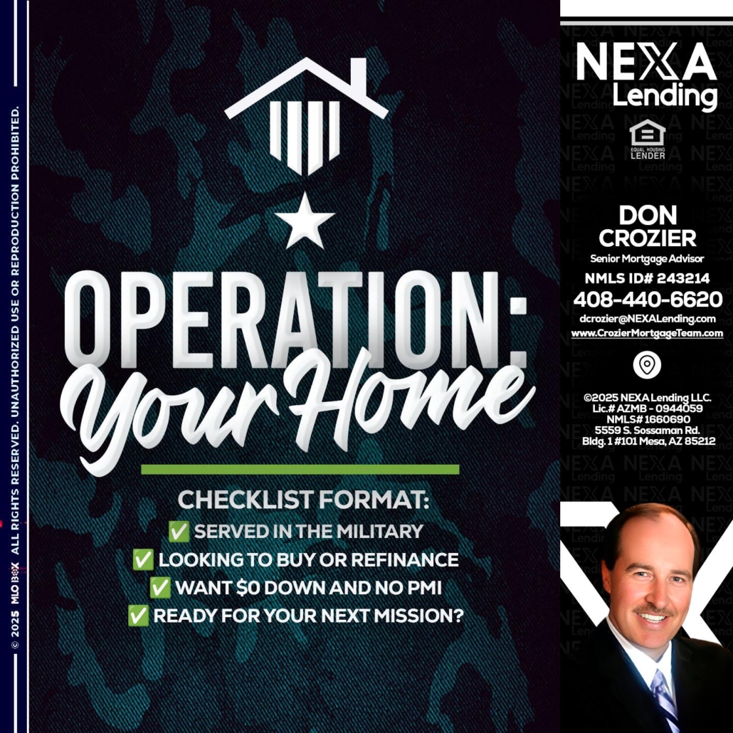 Hi, my name is Don Crozier. I’m a Loan Officer with NEXA Mortgage LLC., offering personalized mortgage solutions, fast customized quotes, great rates and service with integrity.