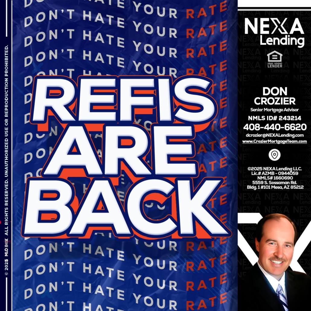 Hi, my name is Don Crozier. I’m a Loan Officer with NEXA Mortgage LLC., offering personalized mortgage solutions, fast customized quotes, great rates and service with integrity.